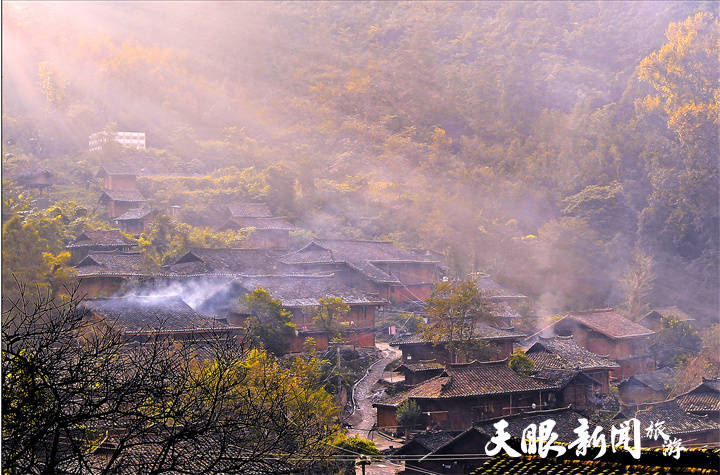 傍晚,整个寨子通透起来,一切仿佛像长了翅膀的小鸟,飞过屋檐,飞过村口,在寨子的上空轻轻漫舞,与寨子里升腾的袅袅炊烟汇成一块,融成一团,书写着浓浓的乡愁。
