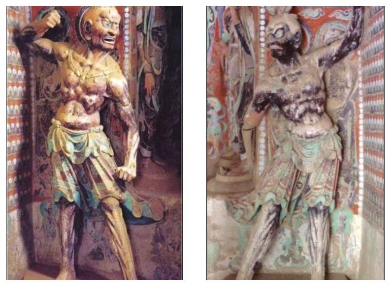 这两尊塑像颜色已经不复当初