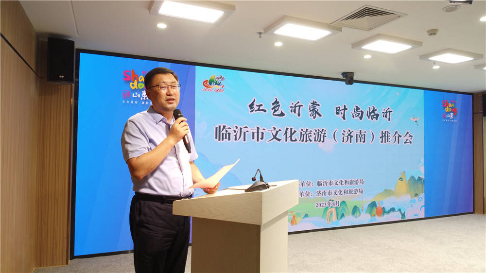8月9日下午,“红色沂蒙·时尚临沂”2023临沂文旅推介会走进泉城济南,向济南市民推介临沂旅游线路产品。济南市文旅局党组成员、副局长任骁瑞,临沂市文旅局四级调研员齐永胜,以及济南当地旅行社及媒体等出席推介会。沂南、平邑、费县、蒙阴、临沭部分县及临沂文旅集团现场作了推介。