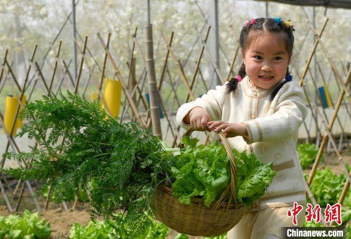 图为小朋友在灵粮农场内体验采摘。 王刚 摄