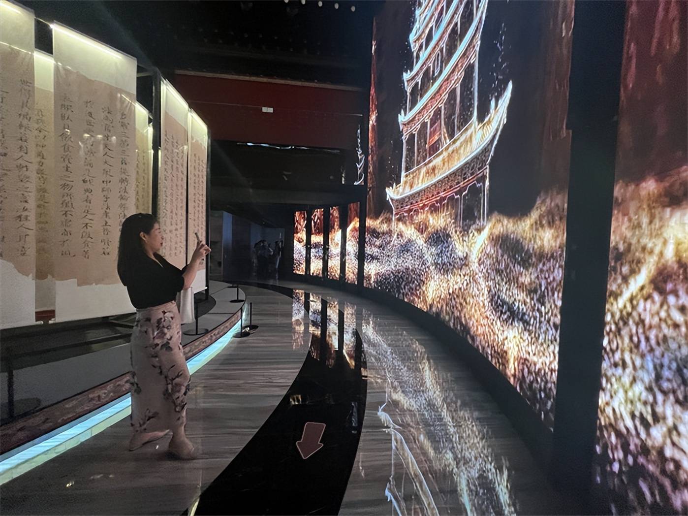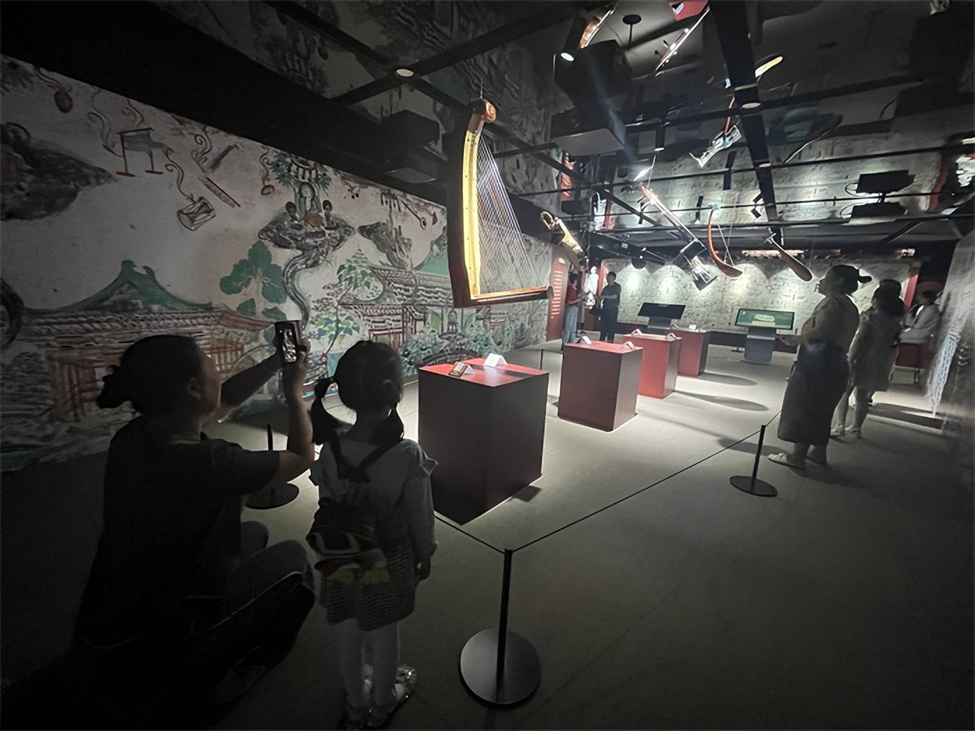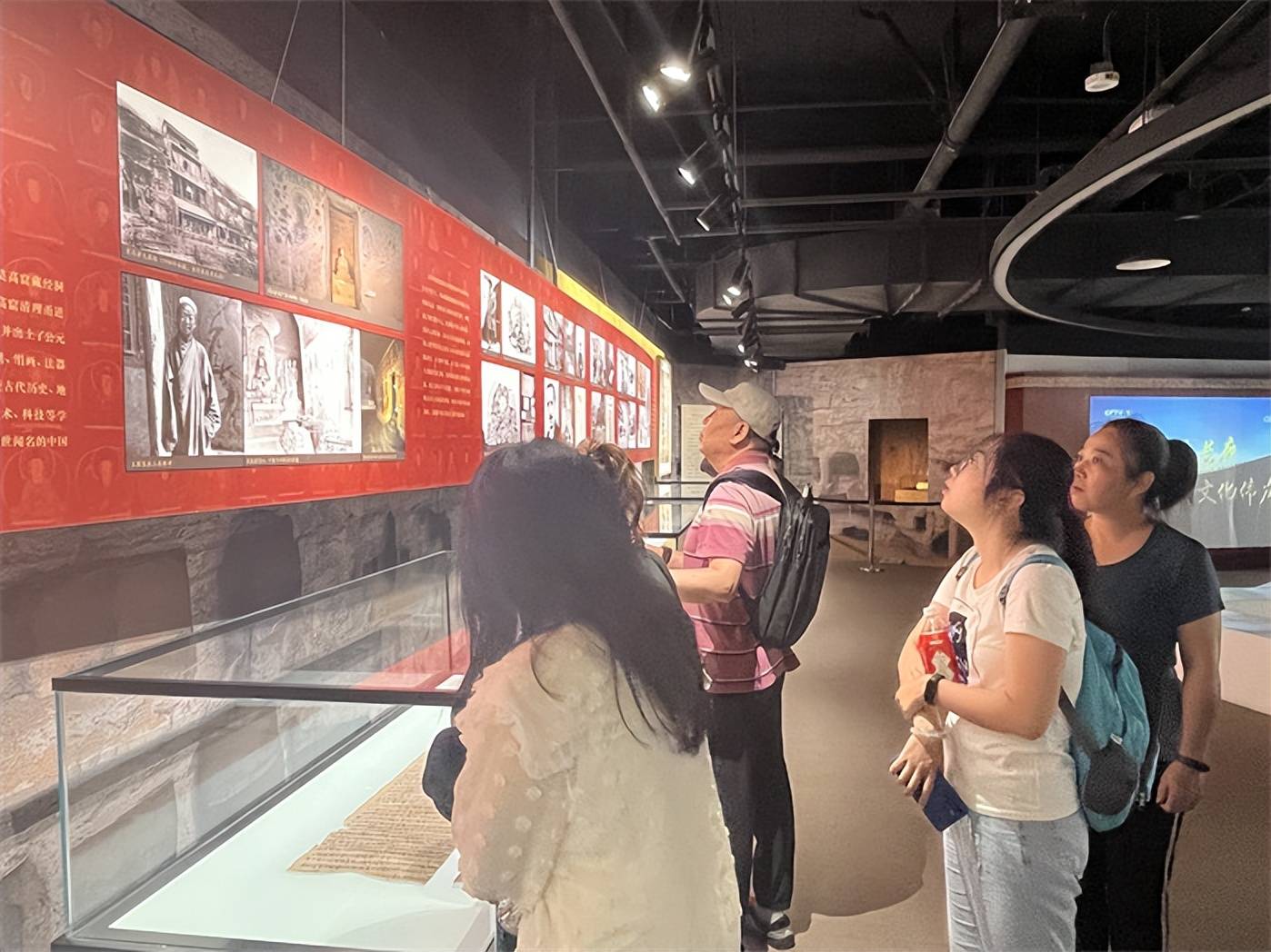 展览现场,很多家长领孩子在细细欣赏领略敦煌艺术成就。现场布展细节十足,壁画、塑像、流光溢彩的音画体验,让人叹为观止。能够在家门口看到这么高级的展览,让在场参观的学生们连连赞叹。主办方还设置了盖章环节,有喜欢收集盖章的朋友可以去一试为快。