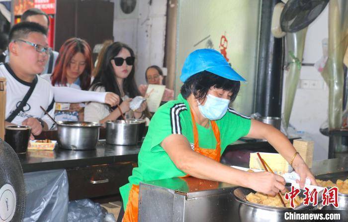 8月10日,在绍兴鲁迅故里,游客购买绍兴臭豆腐。项菁 摄