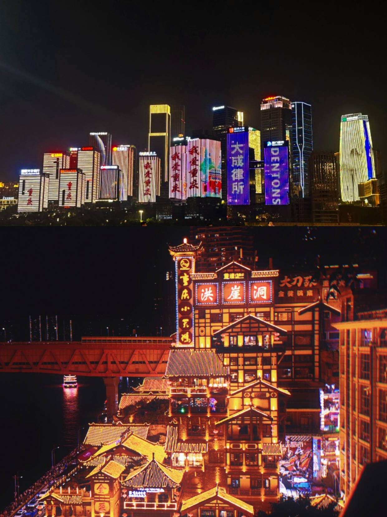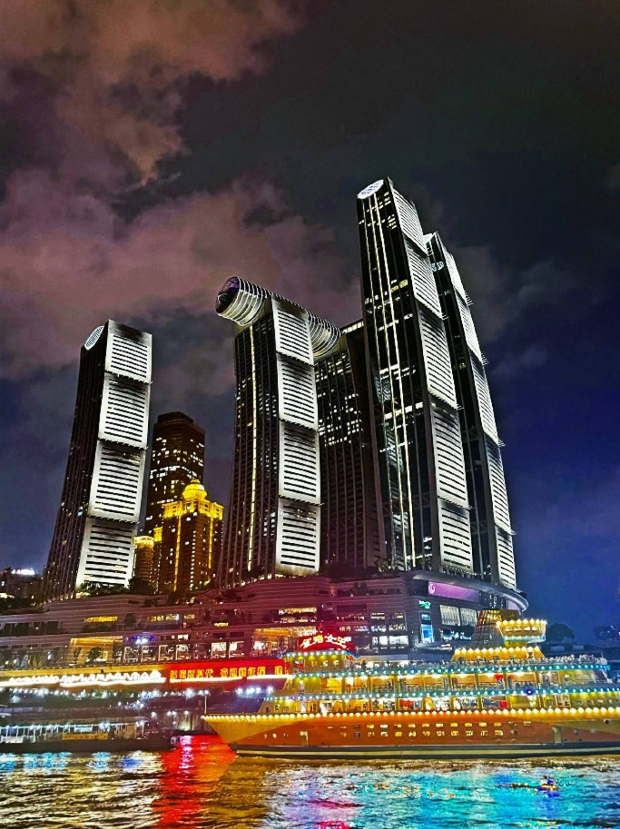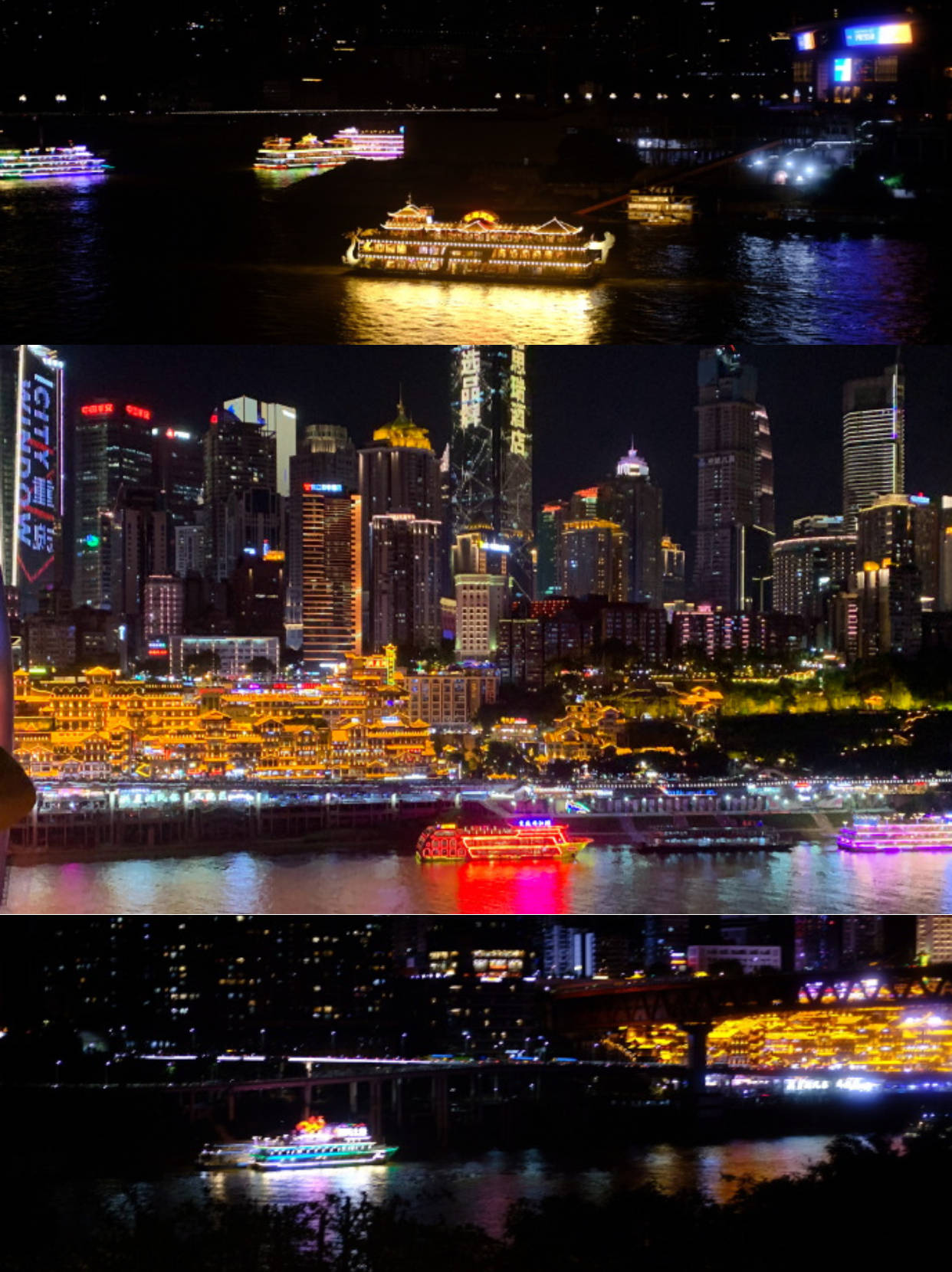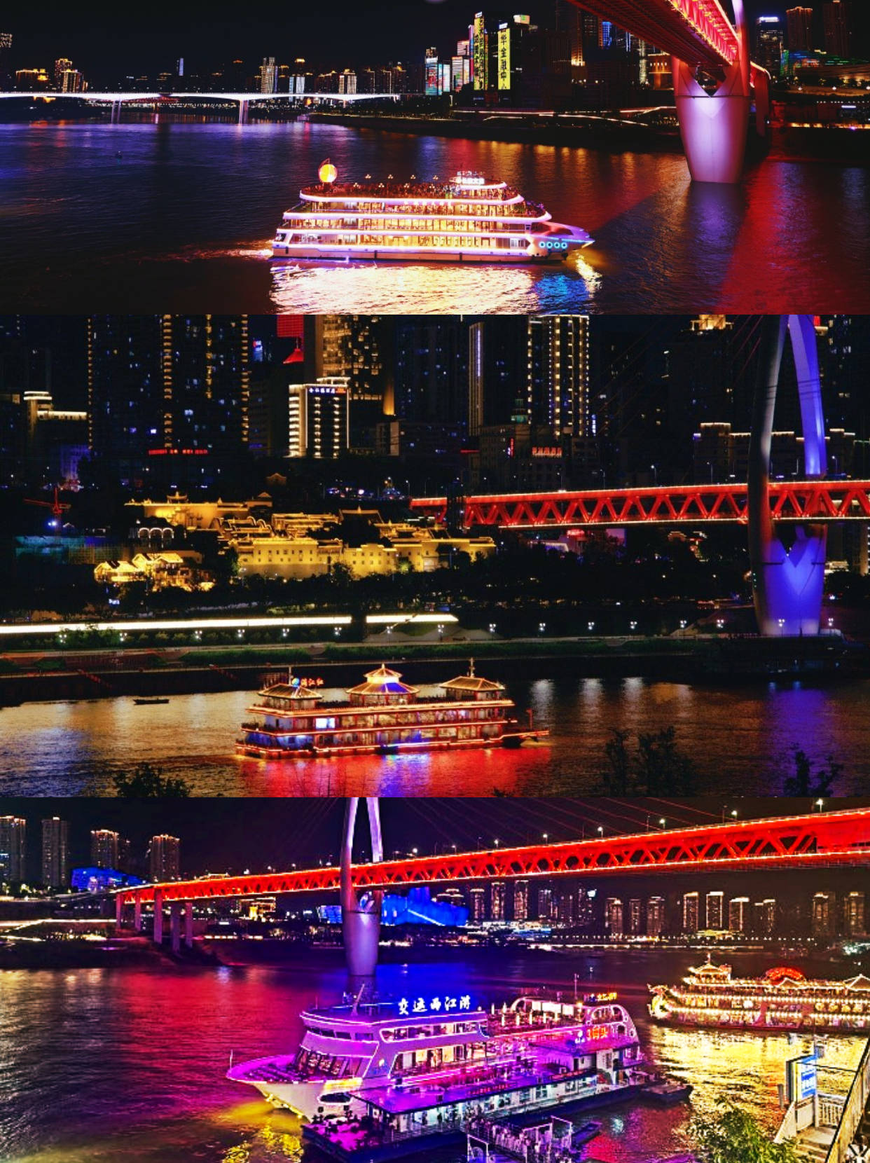 两江夜游可近距离欣赏重庆夜景,而且不用人挤人,超级值! - 📍洪崖洞码头上船 🎫友艇158元/人 ✔️1.2米以下免票 - 🛳游船类型 朝天皓月号 交运满江红号 朝天宫号 朝天门号 交运明月号 金碧女王号 金碧皇宫号 -
