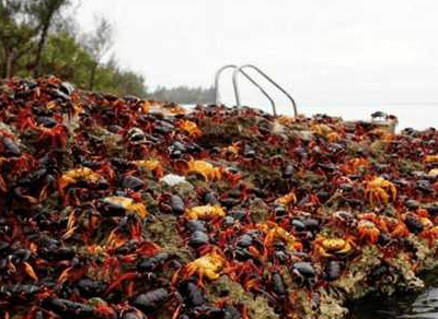 数量如此庞大为什么不吃了它们呢?这问题不仅是当地人的烦恼,也是一众吃货网友的锥心之痛,因为这种螃蟹不能吃,它叫红蟹。红蟹就如它的名字一样,有着红色的外壳,跟我们平常吃用的螃蟹大不相同,跟小龙虾有异曲同工之妙。但我们知道,越是颜色鲜艳的东西越是玄乎,可不是乱吃的,红蟹的体内有一种特殊的毒性蚁酸,进入人体以后容易导致人的肠道黏膜损坏,加上当地的污染严重,红蟹都沾上了大量的细菌,人们一旦误食容易造成头晕不适、上吐下泻的情况。所以朋友们,不是所有的螃蟹都可以乱吃的,出门在外一定要加倍小心,切匆“以身试蟹”了。