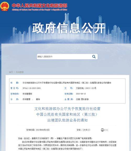 即日起,恢复全国旅行社及在线旅游企业经营中国公民赴有关国家和地区(第三批)出境团队旅游和“机票+酒店”业务。