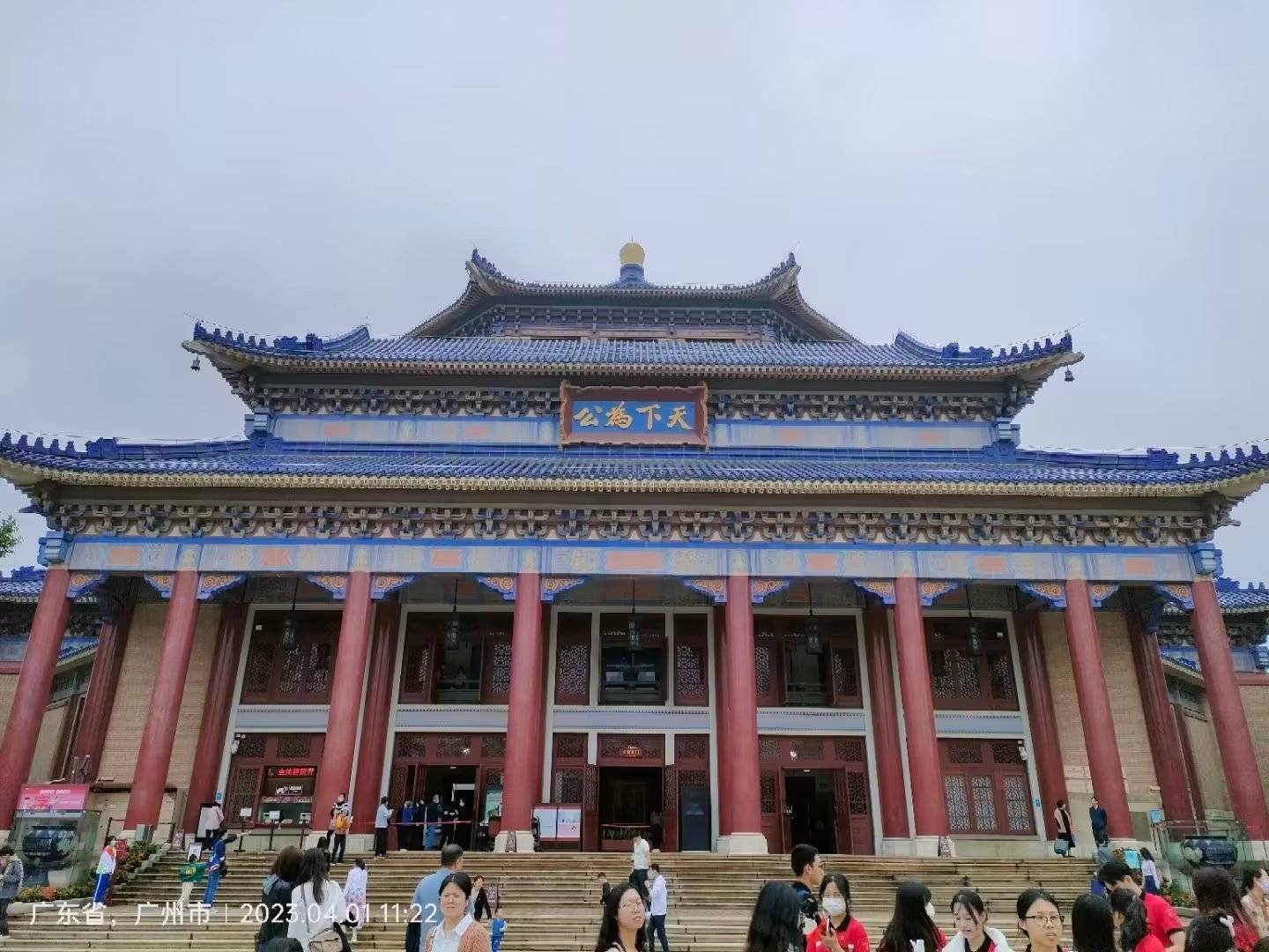 笔者游览的第一地是中山纪念堂。中山纪念堂位于越秀山南麓,是纪念中国近代民主革命先驱孙文先生的建筑物,民国初年,孙文就任非常大总统时,就是以此作为其总统府;后来,孙文逝世,国人及海外华侨为纪念这一伟大人物,遂筹资兴建了这座纪念堂。“以伟大之建筑,作永久之纪念”,就是中山纪念堂的建造背景及历史意义;站在纪念堂前,仰望着孙先生铜像及其背后的“天下为公”牌匾,就能深深感受到伟人身上的伟大革命精神。