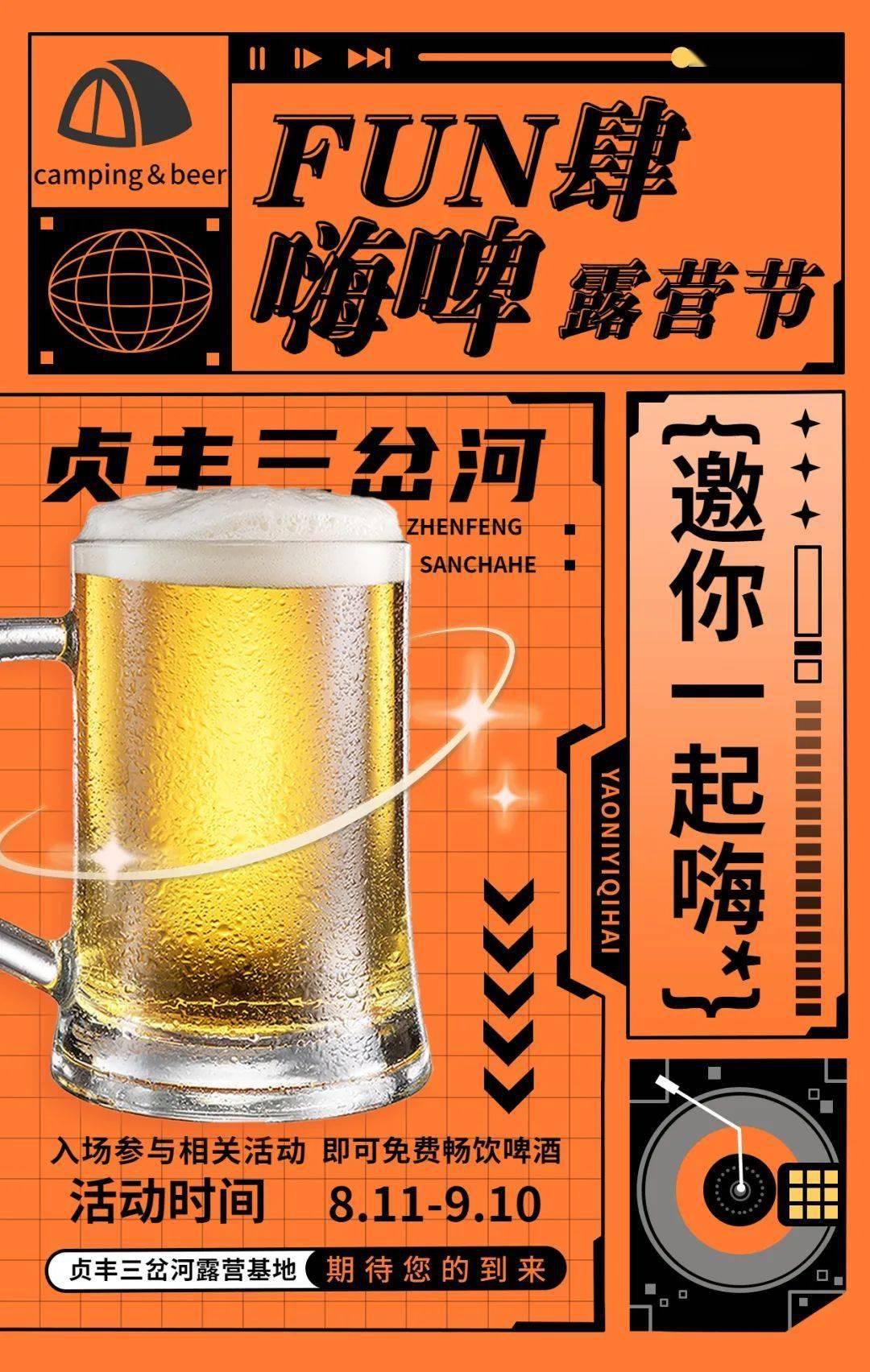 营地消费烤肉套餐,同时拍摄营地活动相关视频发至抖音,添加话题#贞丰三岔河国际露营基地,即可享受啤酒免费畅饮。