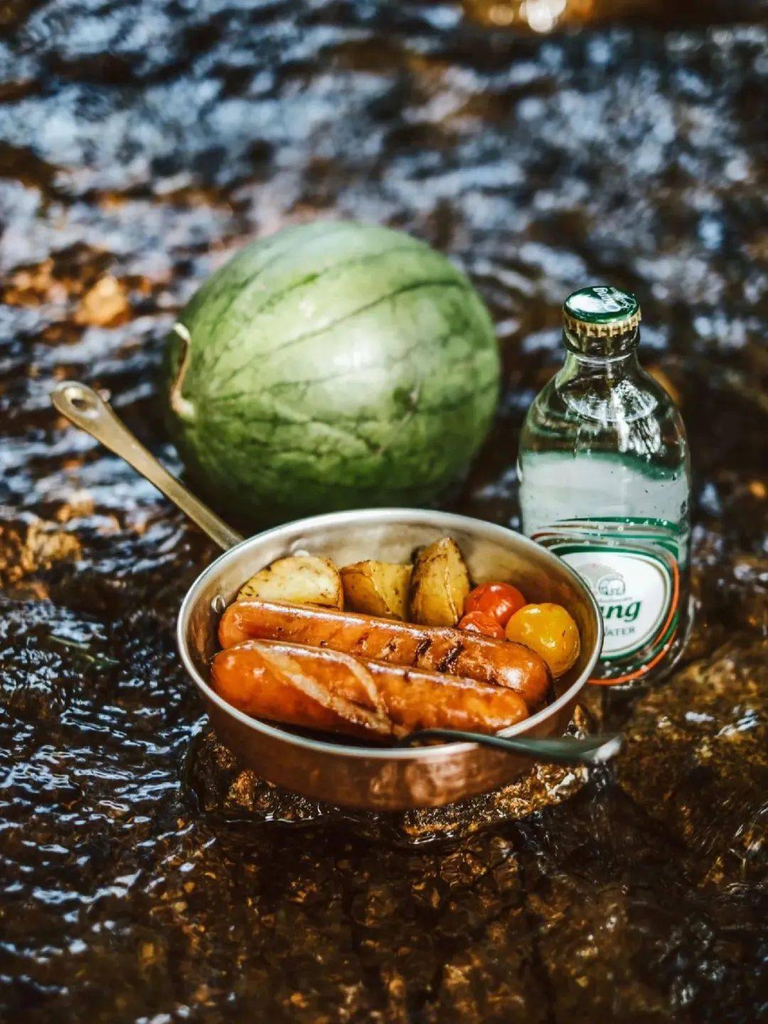 说到冰镇的快乐,西瓜正在为炎炎夏日上演一番救赎文学,汽水配瓜果的「清凉套餐」更是成了入坑冰镇式露营的一大流量密码。涓涓溪流在为食物降温的同时,又为生活蒙上了一层治愈的滤镜。