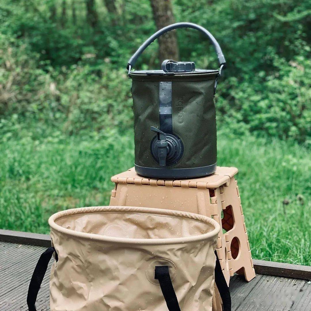 另外,可折叠的水桶也是户外露营的一大实用好物。尤其是冰镇式露营这类与水相关的户外活动,折叠水桶不仅能够参与玩水娱乐,还有辅助的储水功能。在溪流中进行自然的冰镇,水桶还能发挥储物的功能,避免水流带走食品,破坏周边生态。