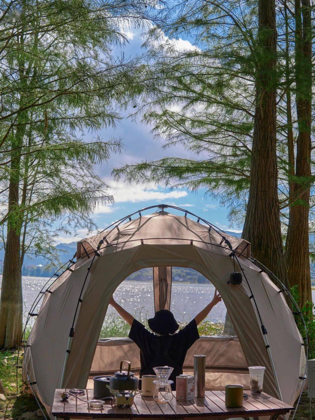 清幽的山林可谓是i人们的天然圣地,闲来无事就能听歌赏景,都市青年早C(Coffe)晚A(Alcohol)文化搬到深山老林都变得养生了起来。兴致所至再动手来场颇有氛围的户外烧烤,也不用担心高温弄得人大汗淋漓。