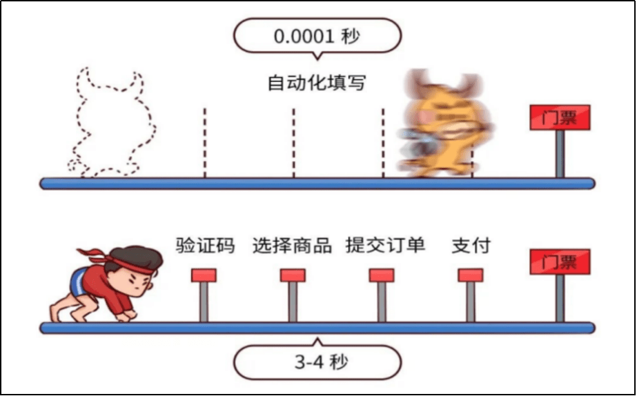 真人抢票和自动化工具抢票对比示意图
