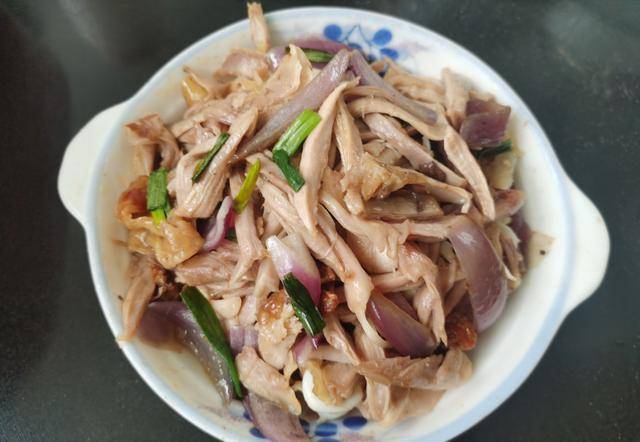 手撕咸鸡腿,鸡腿两只,用盐焗鸡粉半包,一小匙盐腌一晚,取出回温,沙姜拍碎,烧热锅,放二勺油爆过沙姜,放鸡腿在锅里反复煎熟,取出晾凉,锅里放洋葱丝与小葱爆熟,关火,鸡腿撕开为条后再与锅里的洋葱等拌均匀,即可上碟。