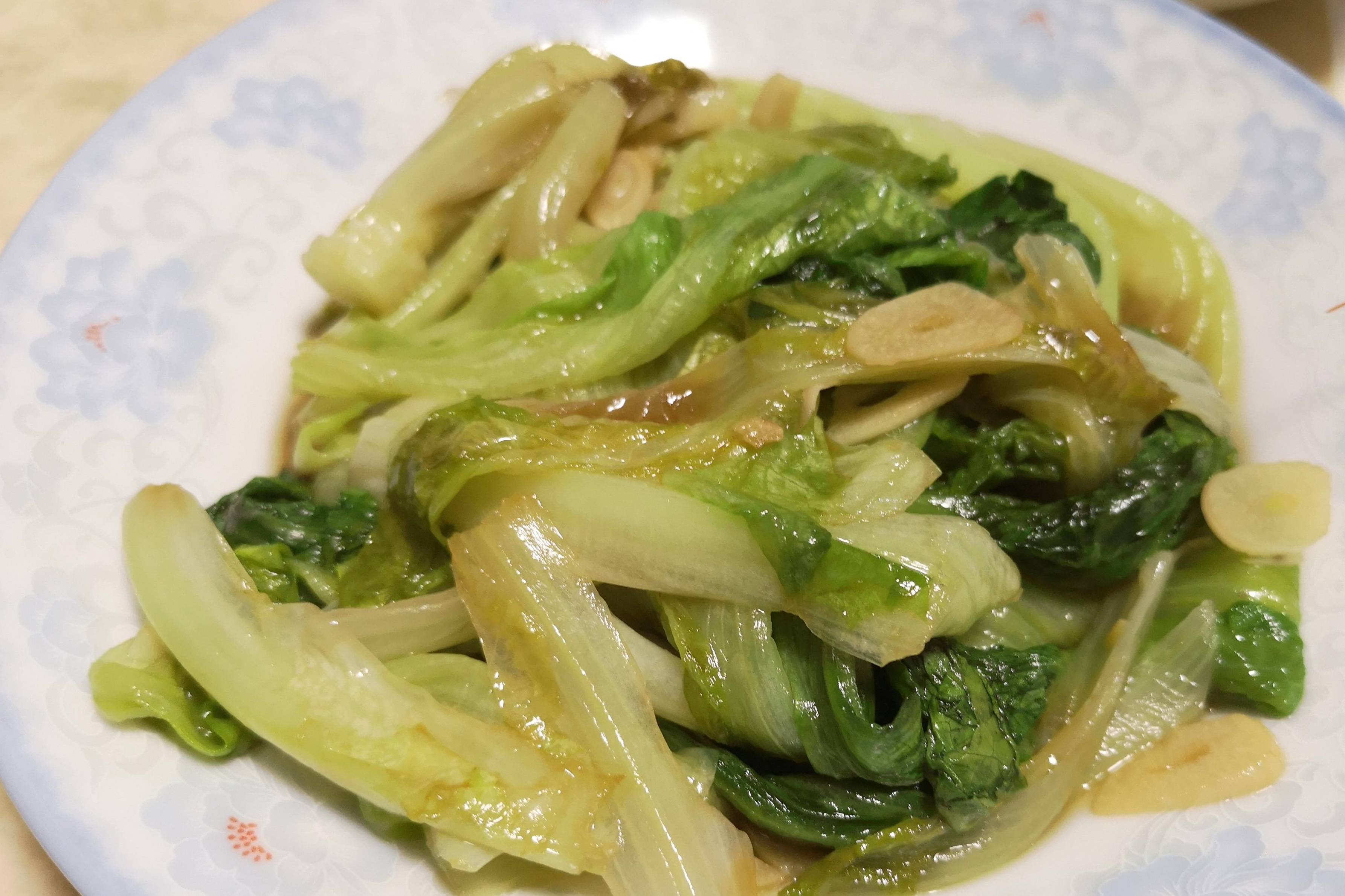 青菜是我们家每餐都少不了的,多吃蔬菜是非常好的。生菜洗净备用,锅内倒入食用油,倒入蒜炒香,蒜香味出来后,倒入洗净的生菜,翻炒至软后加入蚝油一起翻炒均匀即可出锅。