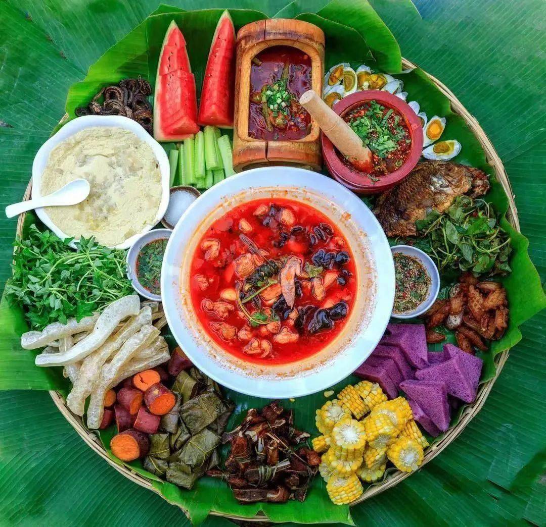 到花腰田间不能错过的还有地道的花腰傣特色生态美食,戛洒牛汤锅、秧箩饭、干黄鳝、咸鸭蛋、炸知了……让人看着新奇,吃着过瘾。