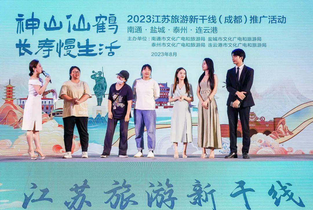 旅游达人卖力“吆喝”、文旅精品现场推介、专宠大奖重磅揭晓……8月10日,2023江苏旅游新干线(川渝)推广周系列活动走进成都,以路演活动的形式面向四川的市民朋友,呈上一份满载诚意与热情的邀请函:欢迎大家来到江苏旅游新干线,畅享神山仙鹤长寿慢生活!