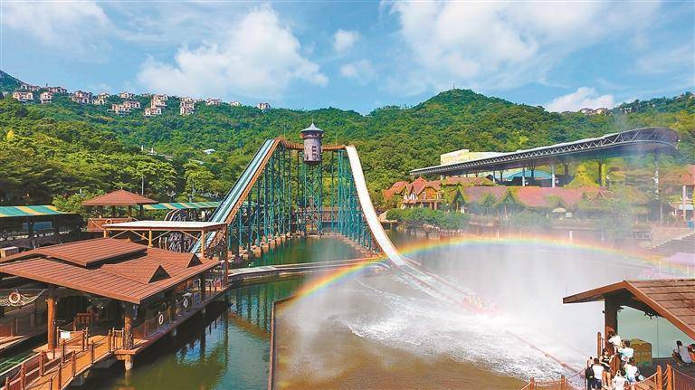 通过在园区探访,深晚记者看到,在激流勇进、木质过山车、云海索道、森林小火车等经典项目上,许多游客在排队等候游玩。深海探奇、观光塔等依然是游客白天畅玩的必打卡项目。“目前景区客流平均每天约5000人次,恢复至2019年同期的70%左右。”景区工作人员告诉深晚记者,今年全新升级的“萌宠动物园”及水舞派对、精灵派对两大表演也是吸引游客前来的一大亮点。