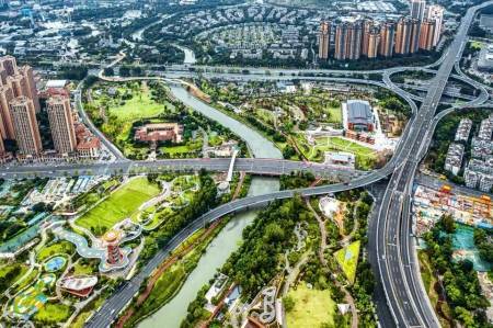 俯瞰成都锦江公园。