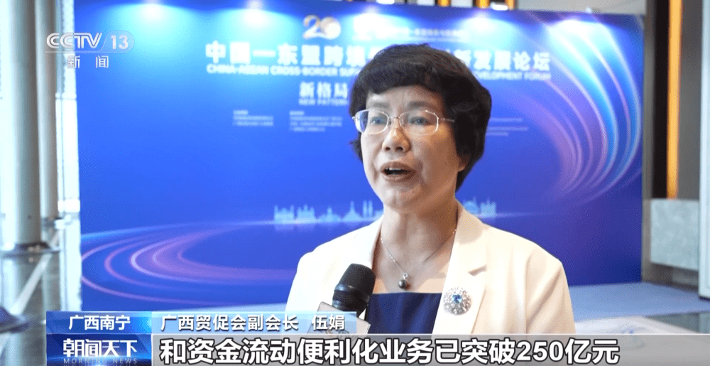 广西贸促会副会长 伍娟:目前,广西跨境投融资和资金流动便利化业务已突破250亿元,这两项金融创新在人民币国际化以及投资和贸易便利化方面迈出了坚实步伐。
