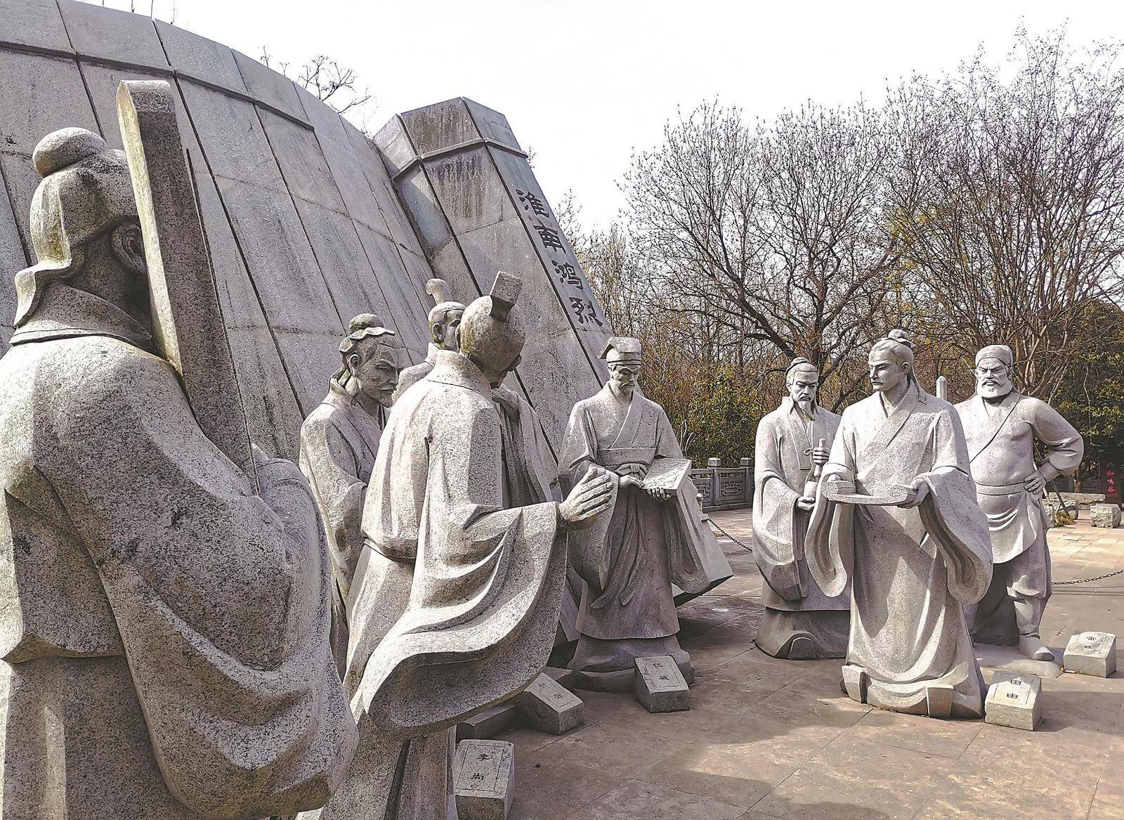 淮南市八公山风景区内反映西汉淮南王刘安召集门客编著《淮南鸿烈》的雕塑。通讯员 陈海朗 摄