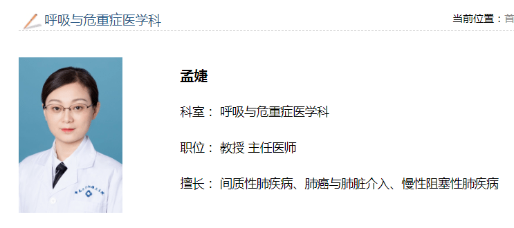 据医院官网介绍,孟婕现任中南大学湘雅三医院呼吸与危重症医学科主任,曾任中南大学湘雅医院呼吸科副主任,从事呼吸系统疾病临床、科研、教学工作20余年,擅长间质性肺疾病、肺癌与肺脏介入、慢性阻塞性肺疾病,有多项医学行业兼职,并曾获多项荣誉,科研成果颇丰。