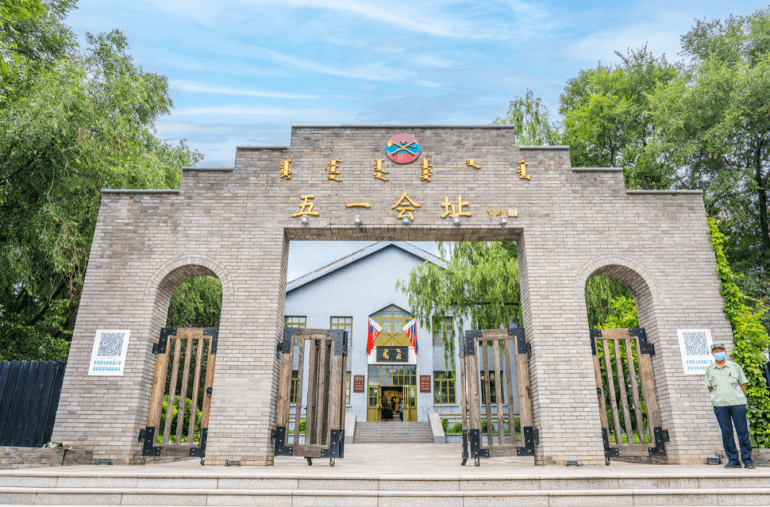 五一会址位于乌兰浩特市五一北路,是一座青砖建造的厅堂。因1947年4月23日至5月1日,内蒙古人民代表会议在这里召开并宣告全国第一个少数民族自治政权——内蒙古自治政府在此成立而得名。五一会址作为中国共产党民族区域自治政策伟大胜利的象征,是展示内蒙古民族团结与进步的重要标志,也是20世纪40年代内蒙古各族人民在中国共产党领导下,推翻封建统治,建立新生人民政权的丰碑。