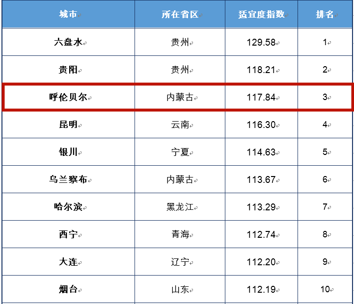 适宜度指数排行榜