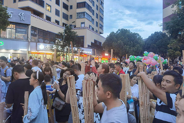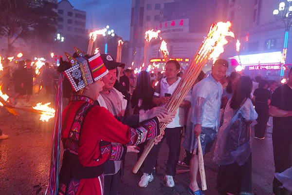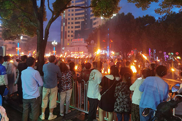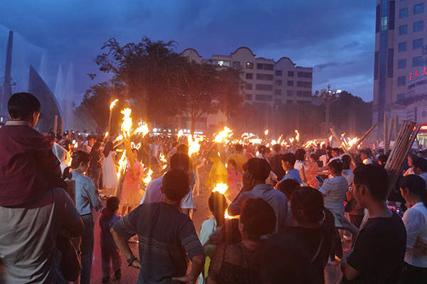 参加活动的各族群众点起了随身携带的火把,顿时变成了一片火海,场景非常壮观热闹。