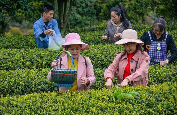 游客体验采茶。付作侨摄