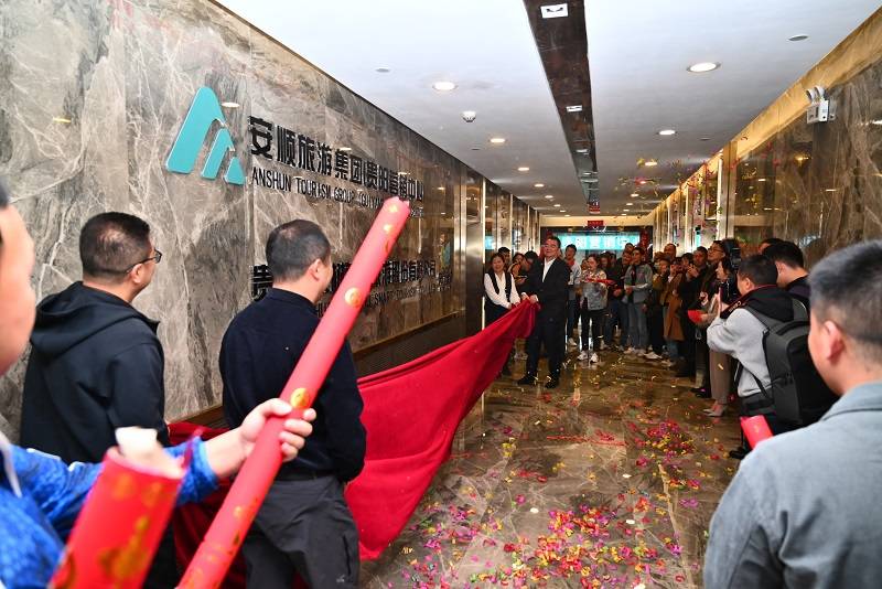 安顺市文体广电旅游局相关领导,安顺旅游集团公司党委书记、董事长 吴宏建,贵阳市旅游协会秘书长、百灵文旅集团总经理张志,贵州青葵文化旅游发展有限公司总经理 夏伟杰共同为贵阳营销中心揭牌,在嘉宾的见证下开启安顺旅游又一新征程。