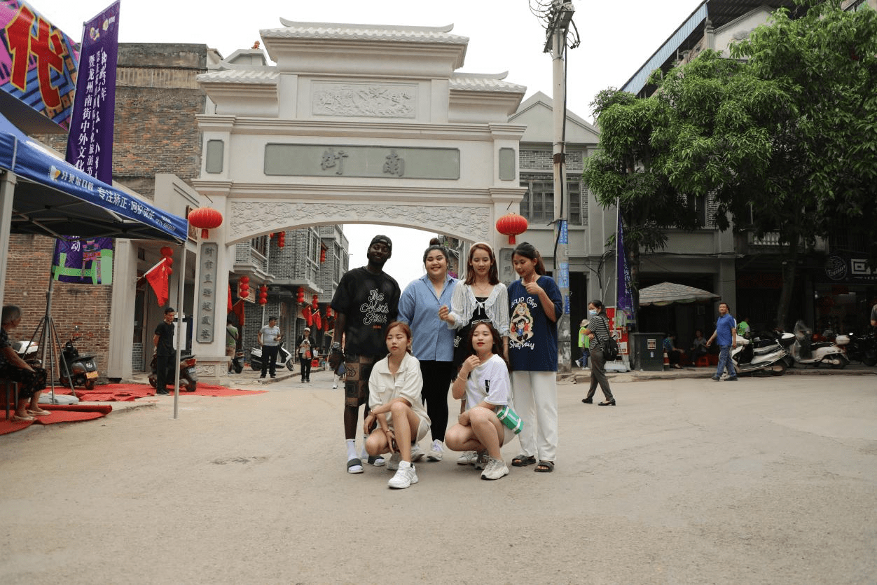 游客在龙州县南街合影留念(龙州县委宣传部供图)