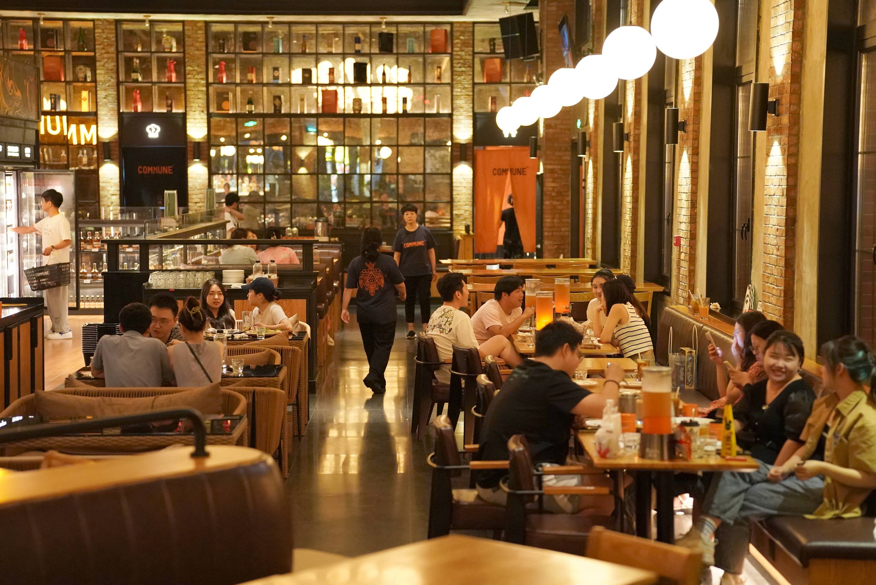 消费者在西安市一家餐吧内就餐休闲(7月30日摄)。 新华社记者 邵瑞 摄