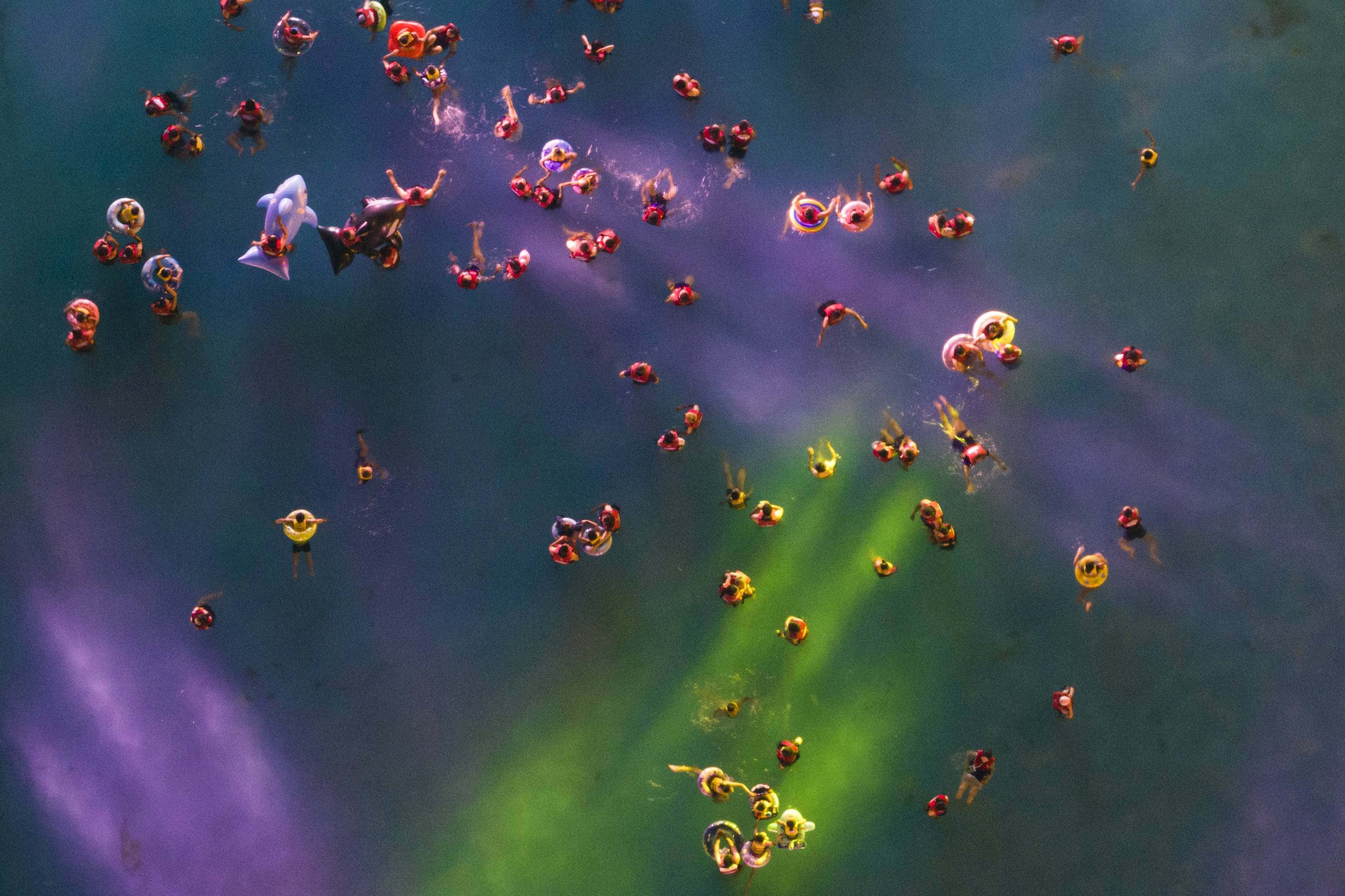游客在西安市浐灞生态区一家水上乐园内游玩(8月10日摄,无人机照片)。 新华社记者 邵瑞 摄