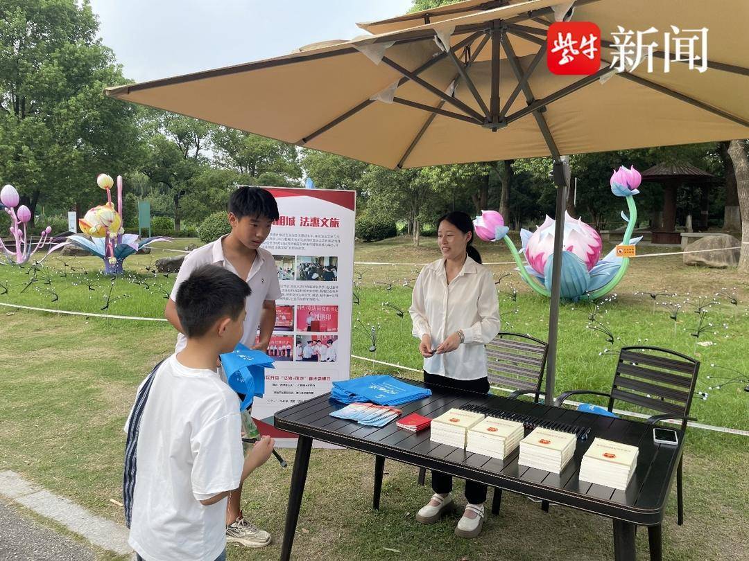 8月8日下午,苏州市相城区黄桥街道司法所联合荷塘月色湿地公园在公园内开展法治宣传教育进景区活动,营造景区良好法治氛围,树立游客和旅游从业人员的法治意识。
