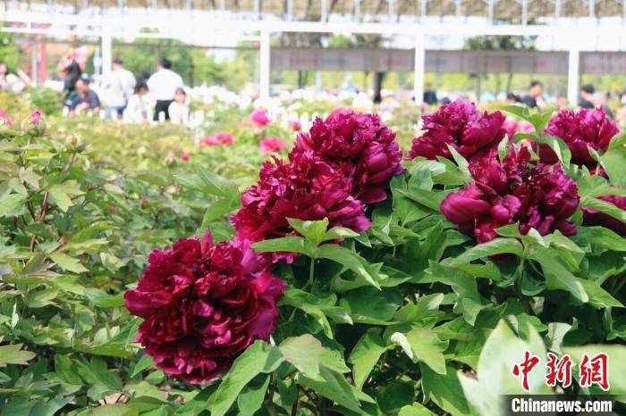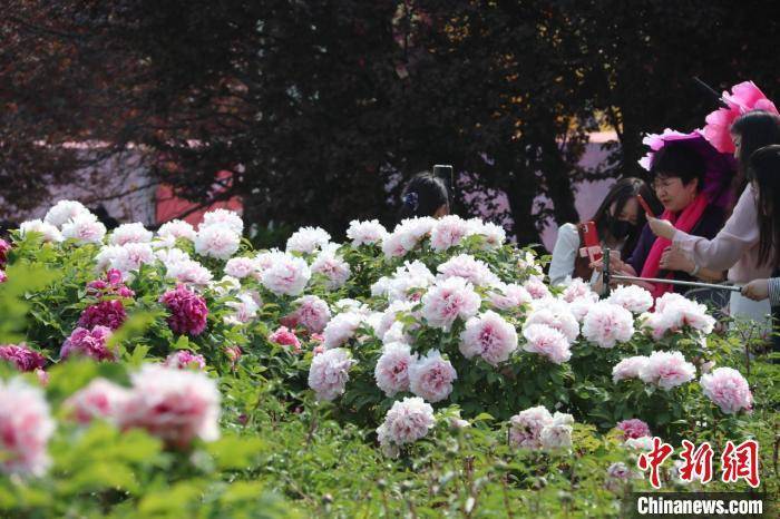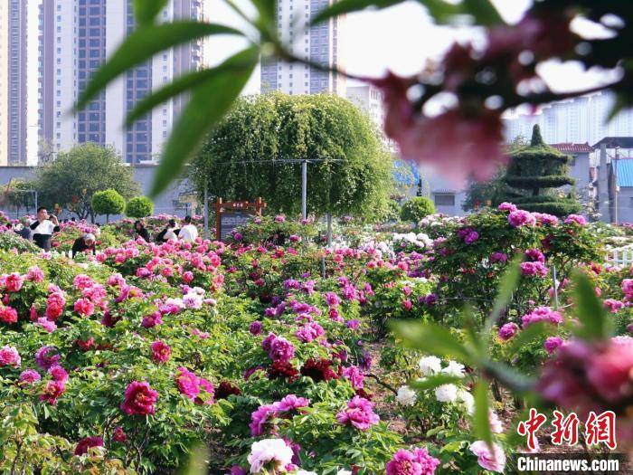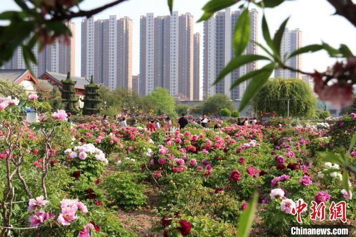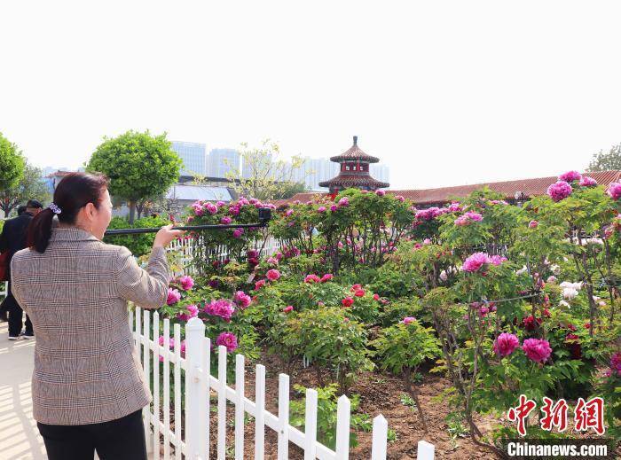 在菏泽牡丹区曹州百花园,牡丹花迎来盛放,引游人观赏。 李明芮 摄