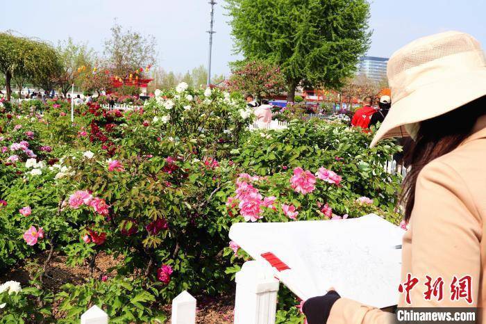 在菏泽牡丹区曹州百花园,牡丹花迎来盛放,引游人前来写生。 李明芮 摄