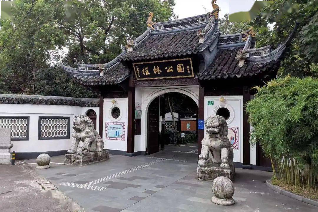 桂林公园原址是黄金荣的家祠,1933年扩充为花园,因园内遍植20多种桂花树,故易名为桂林公园。整座公园的造园艺术采用江南古典传统布景技法,布局精巧别致,园内龙墙、花墙回绕、小桥流水、叠山立峰、楼台掩映、亭榭参差、曲径通幽、花木葱茂、布局协调,建筑风格明快。