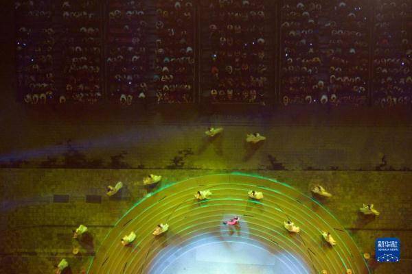 游客在西安城墙南门瓮城内观看文艺表演(8月10日摄,无人机照片)。