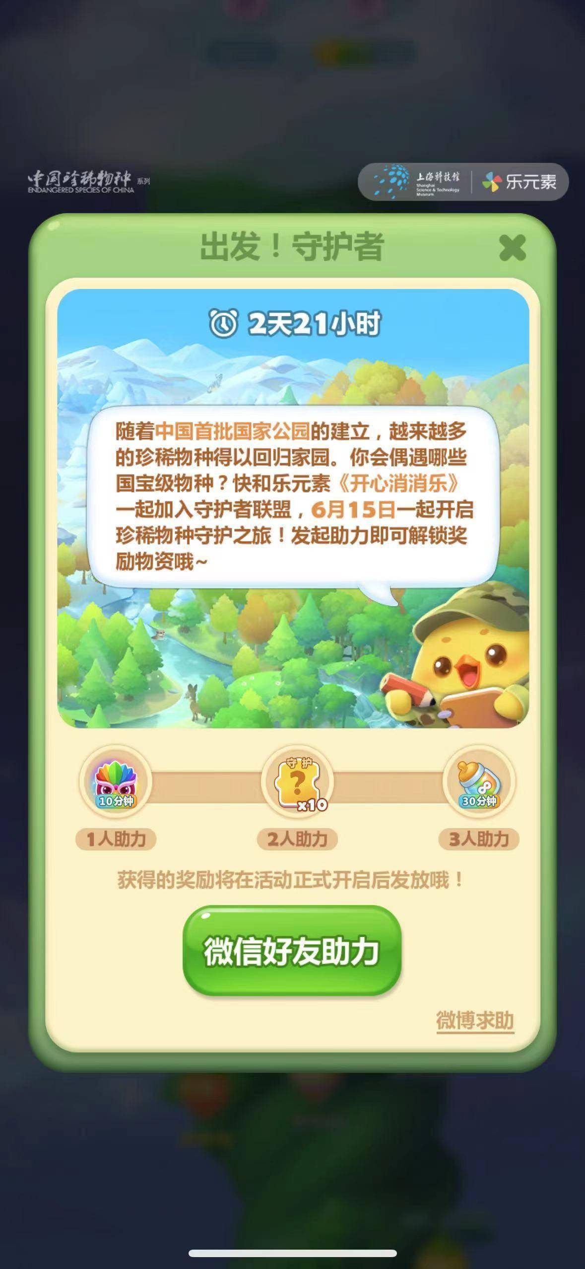 近日,上海科技馆旗下品牌科普资源“中国珍稀物种”系列纪录片,与游戏公司乐元素旗下3款游戏《开心消消乐》《偶像梦幻祭2》《开心水族箱》展开联动,“破圈”开发科普游戏“守护之旅”。