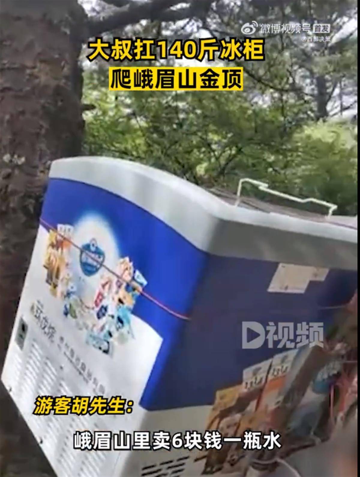 原标题:大叔扛140斤冰柜爬峨眉山金顶,游客:很不容易,冰水卖6元一瓶很公道