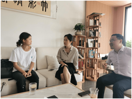 郑丹萍、冯芸菲与汉孚书院王老师进行沟通。