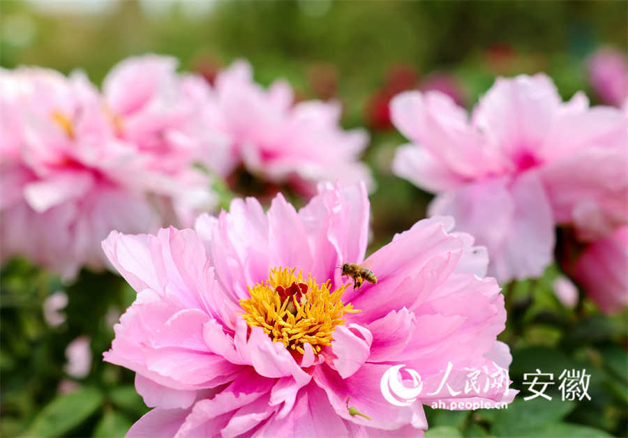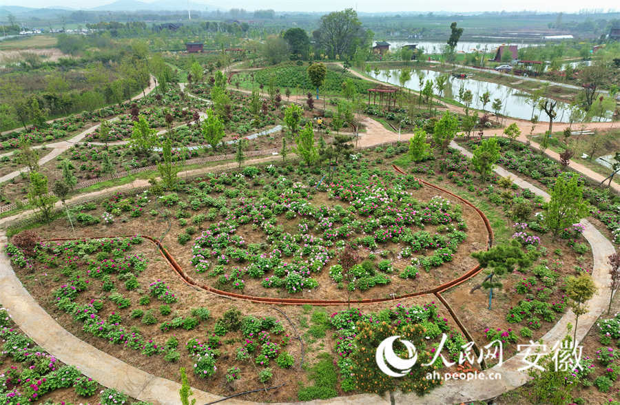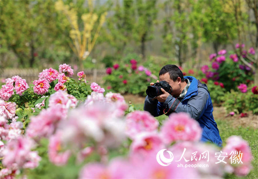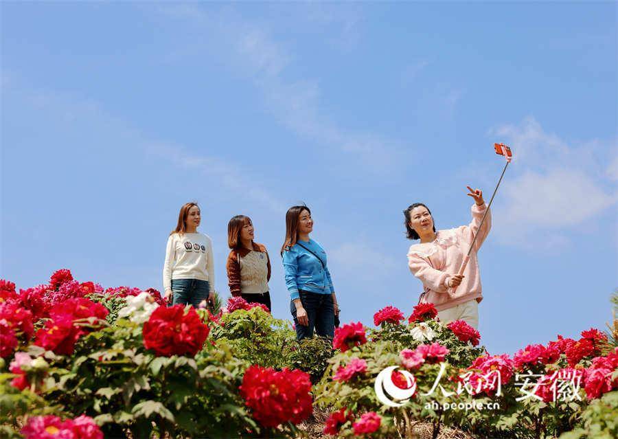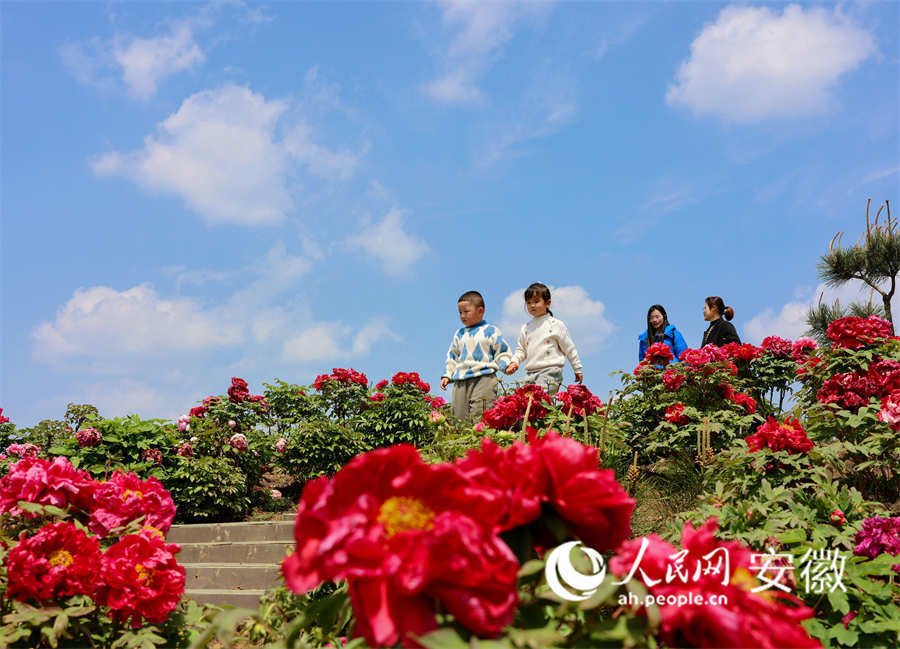 4月7日,合肥市肥东县长临河镇白马社区徽州牡丹生态产业园内,3万余株各色牡丹竞相绽放,将乡村装扮得分外多姿,吸引游客前来观赏游玩。