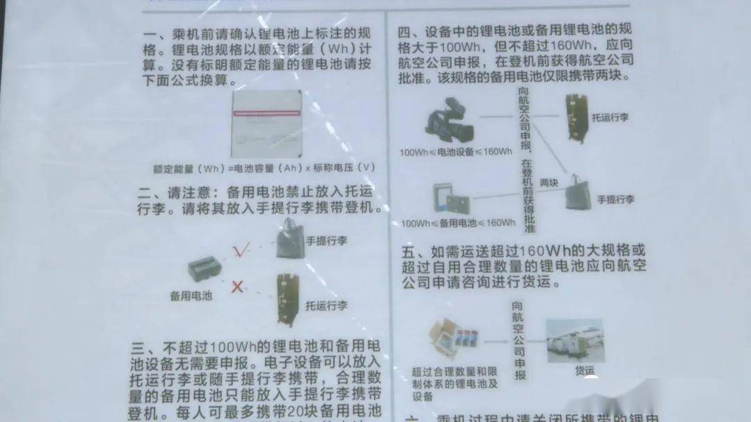 现在咱们出行携带最多的就是锂电池和充电宝,锂电池和充电宝是不能托运的,需要随身携带。随身携带的锂电池和充电宝我们也要注意,它的标志标识要全面的清晰,同时它的额定能量要在100瓦时以内的。