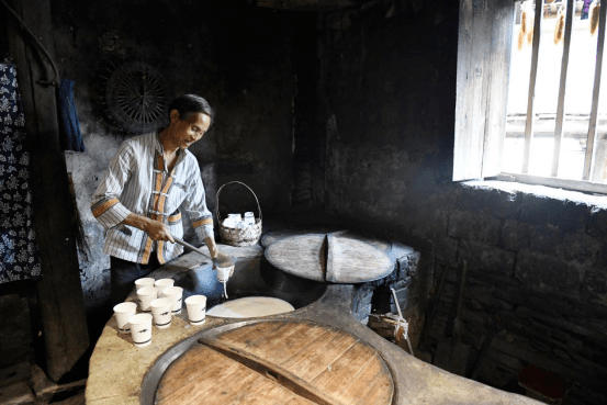 村民正在给游客打现磨豆浆