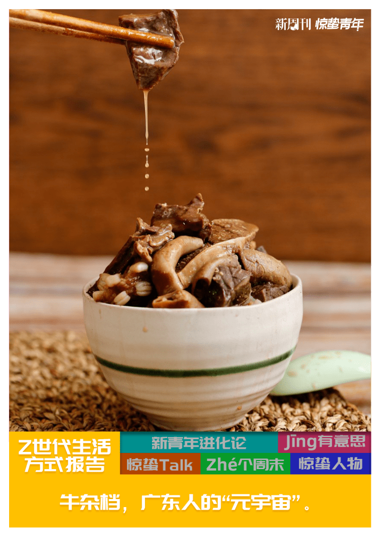 如今,不少广东人从小吃到大的牛杂,也跟随着他们成长的步伐,从小时候的解馋小吃,变成了打工人的平价快餐。