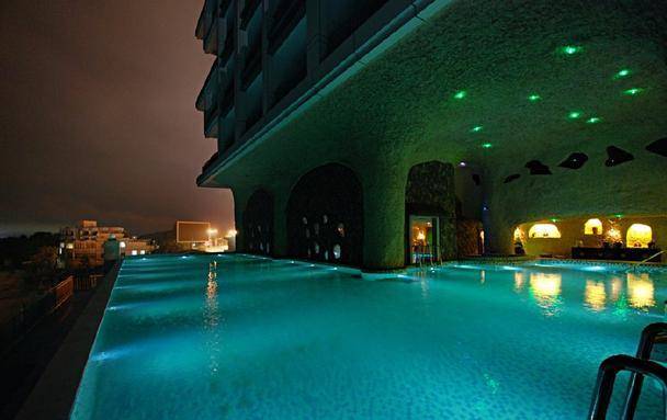 海王子酒店主要偏土耳其风格,展示出怀旧复古的风格,里边全是洞穴,因为离海滩比较近,所以有许多没有边际的泳池,游客可以在这里一边享受游泳,一边欣赏海景,吹海风。室外美,室内自然也是很高大上。里边的陈设千奇百怪,大堂内,完全的地中海风格;卧室内,温馨舒适不在话下。难怪被网友称为是广东最“浪漫”的土耳其酒店了。
