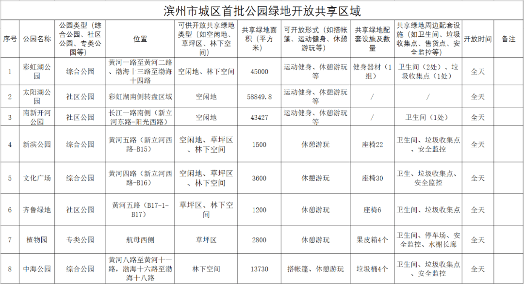 滨州市实施第二批公园绿地开放共享的