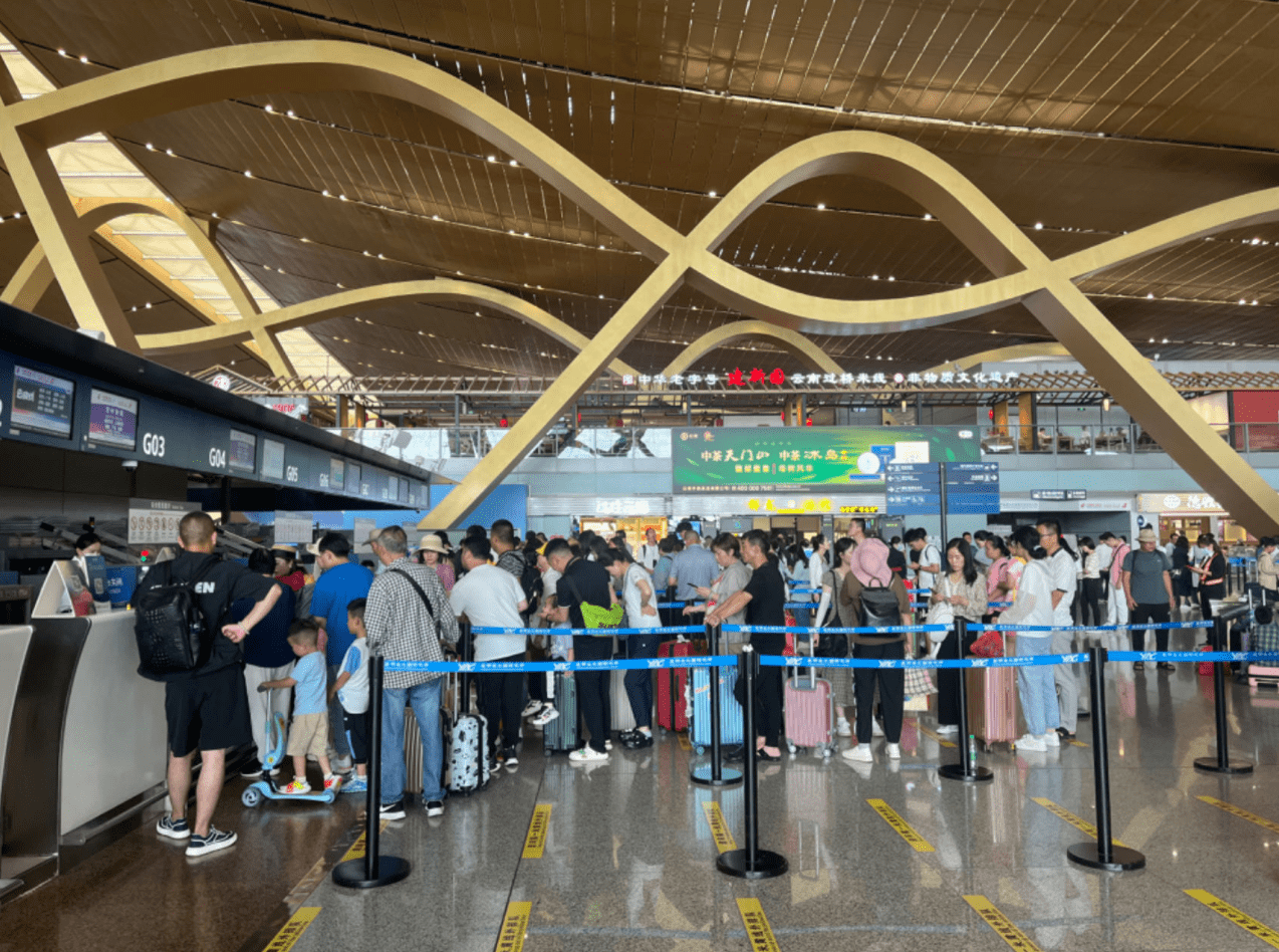 昆明机场作为游客到昆的第一站,每天的客流量都非常大,很多省外的游客们走出机场,边说着“太凉快了”“天气太好了”的声音,边拍照的场景,时时可见。凌晨1点,机场人来人往的场景,让旅游行业人士不断感慨今年暑期旅游市场的火爆。数据显示,7月1日至8月9日,昆明机场日均保障进出港航班超过1000架次、日均进出港旅客14万人次。于2023年7月18日正式启用的S1卫星厅,启用以来共计保障进出港航班2641架次、旅客37.1万人次。