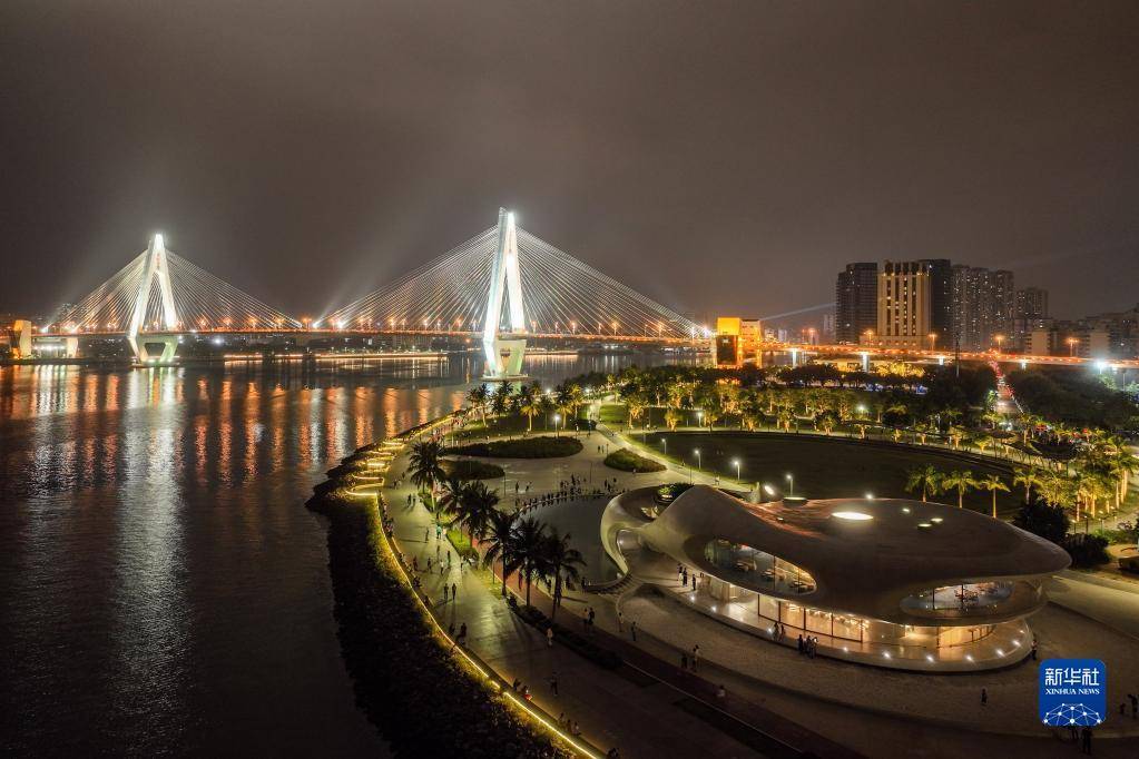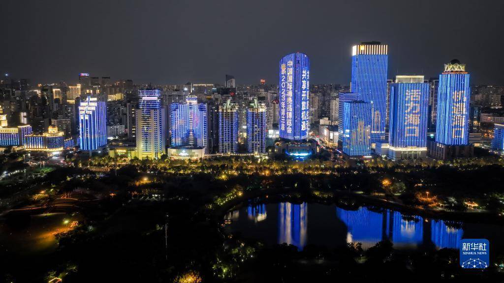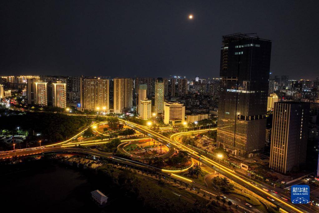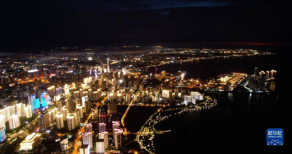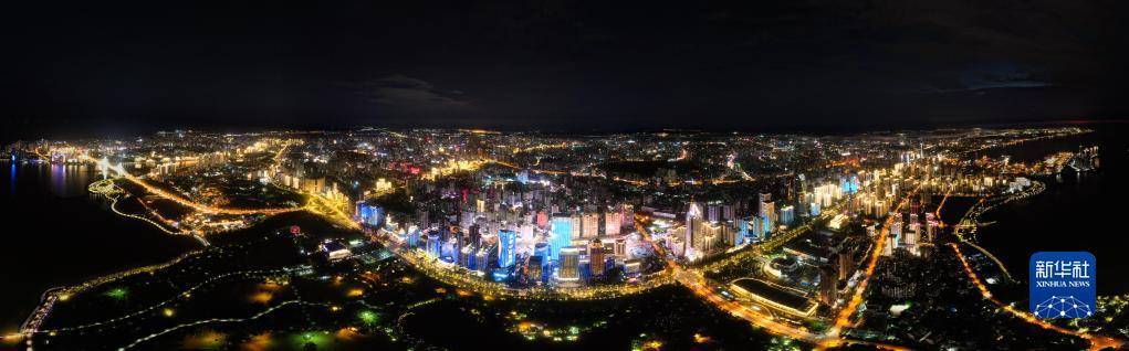 海口市区夜景(2022年8月19日摄,无人机照片)。