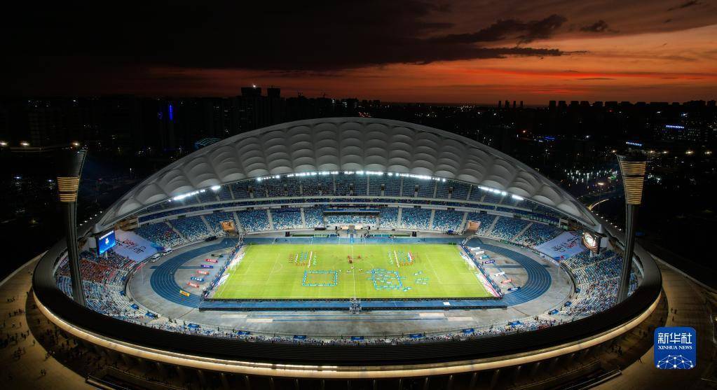 2022年6月3日,2022赛季中国足球协会超级联赛开幕式在海口五源河体育场举行(无人机照片)。