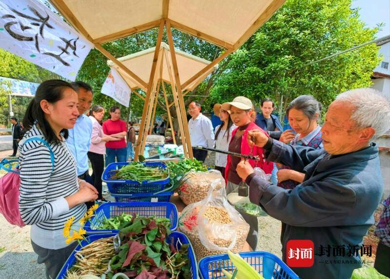 赤橙黄绿的五谷杂粮、雄赳赳的大公鸡、色泽圆润的土鸡蛋、热腾腾的鱼鳅粑……近日,主打当地生产、当季上市的“峡谷里”农夫集市开市,10余个不同品类的货架在自贡市自流井区飞龙峡镇红岩村的一处三岔路口空地上一字排开,吸引不少经过此处的游客前来凑热闹。